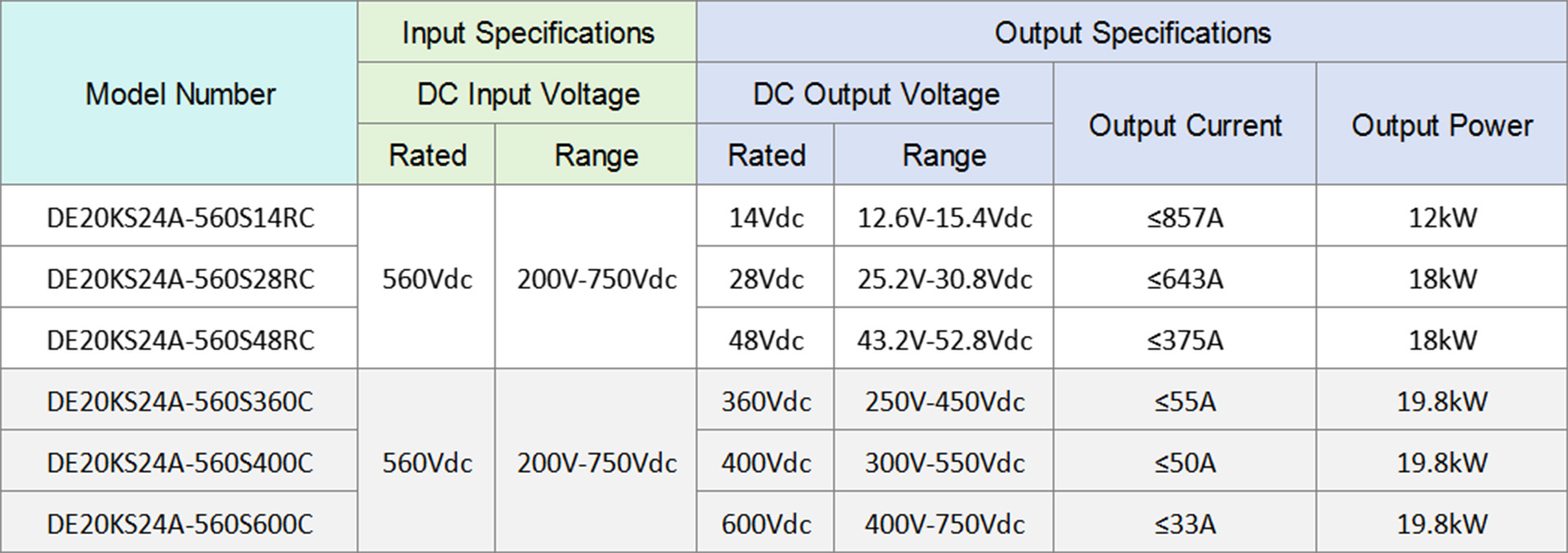 Input Voltage:200V~750VDC, 500V~850VDC, 500V~940VDC