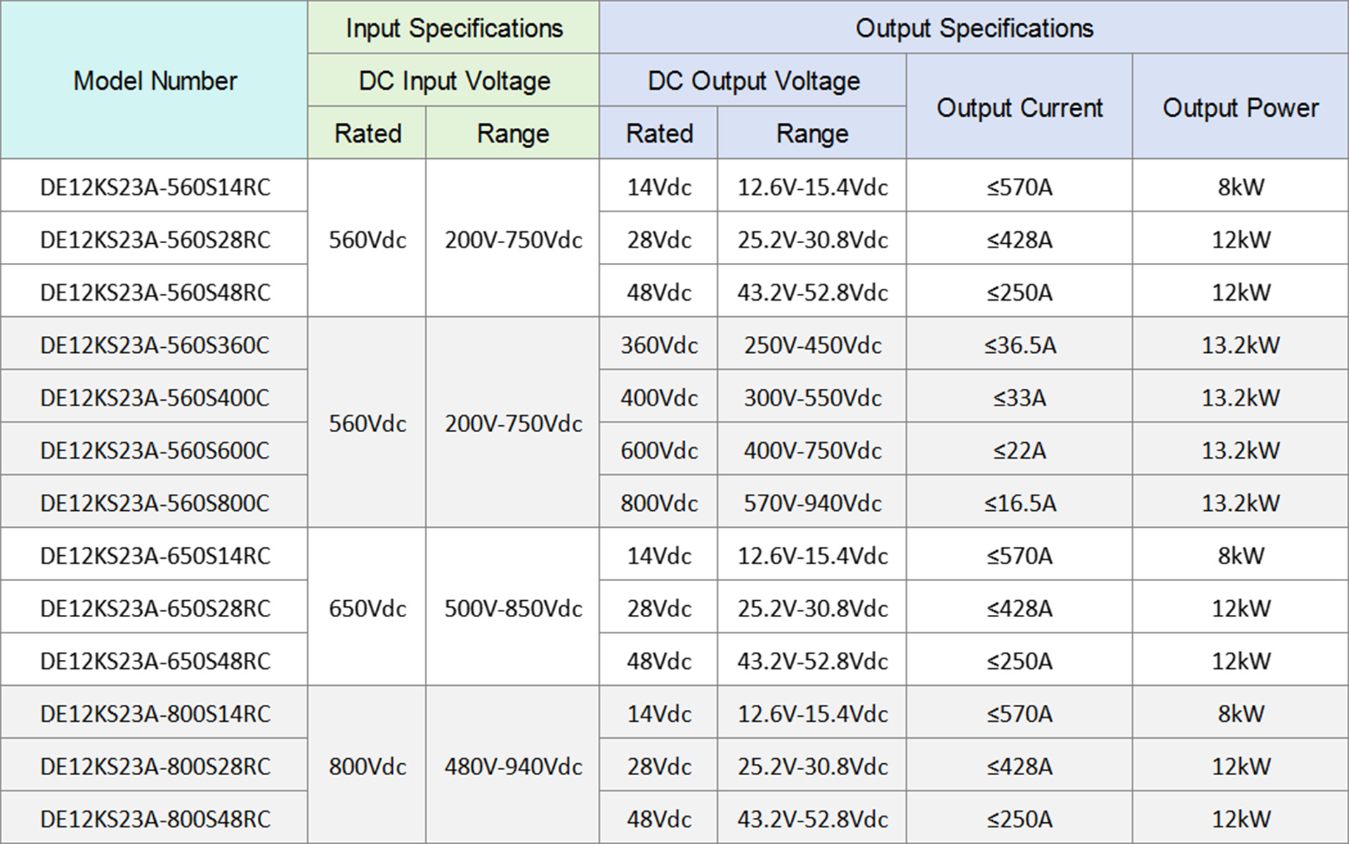 Input Voltage:200V~750VDC, 500V~850VDC, 500V~940VDC